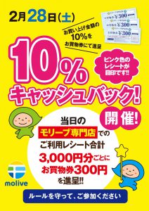 モリーブ専門店のLINEショップカード 「特典チケット→お買物券引換え」のお知らせ