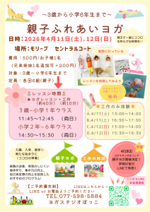 【ヨガスタジオぼっこ】 親子ふれあいヨガ